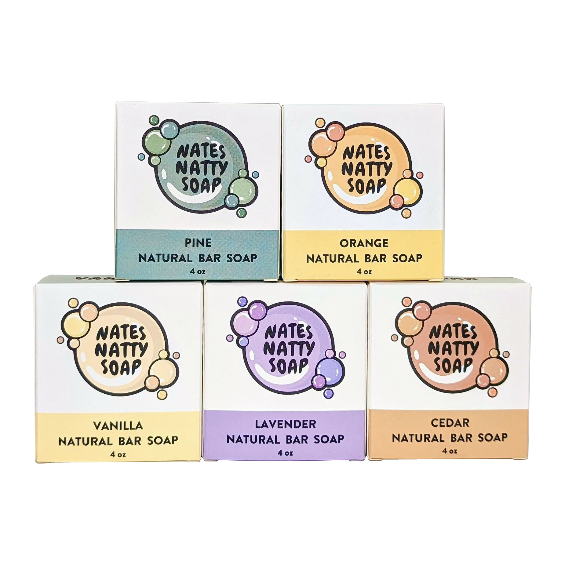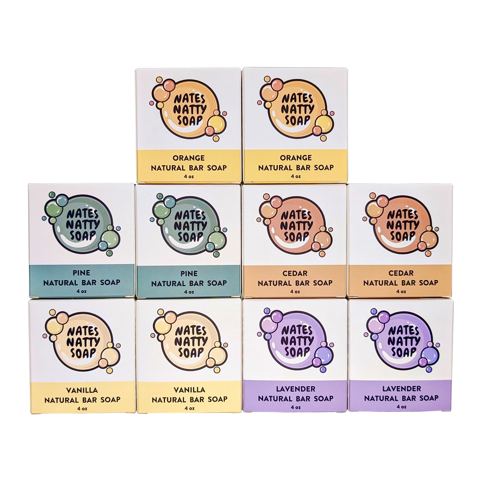 - Pine, Orange, Vanilla, Lavender, and Cedar bar soap