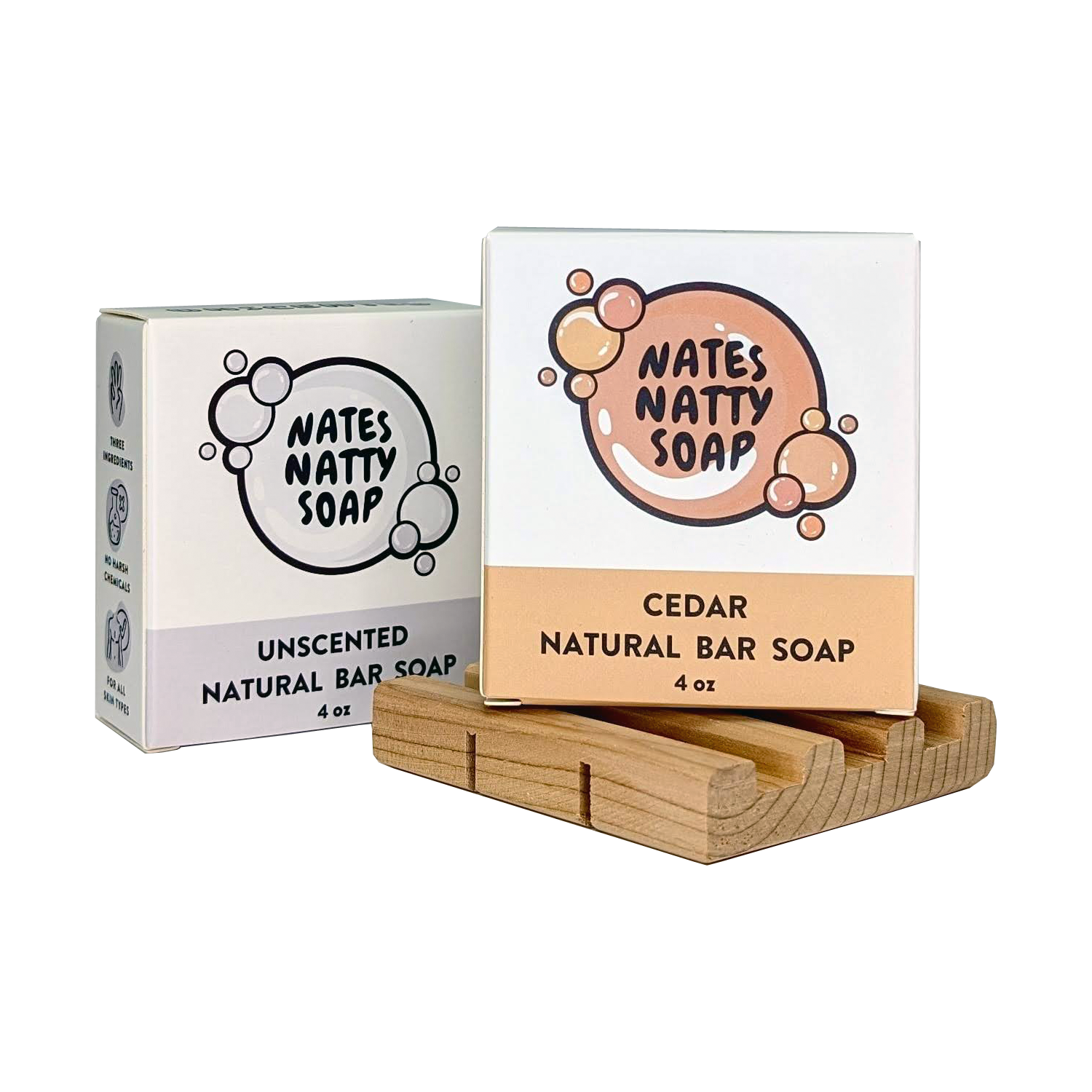 This bundle comes with one Cedar bar soap, one Unscented bar soap, and our wooden soap saver tray, giving you everything you need for a dynamic, luxurious lather session.
