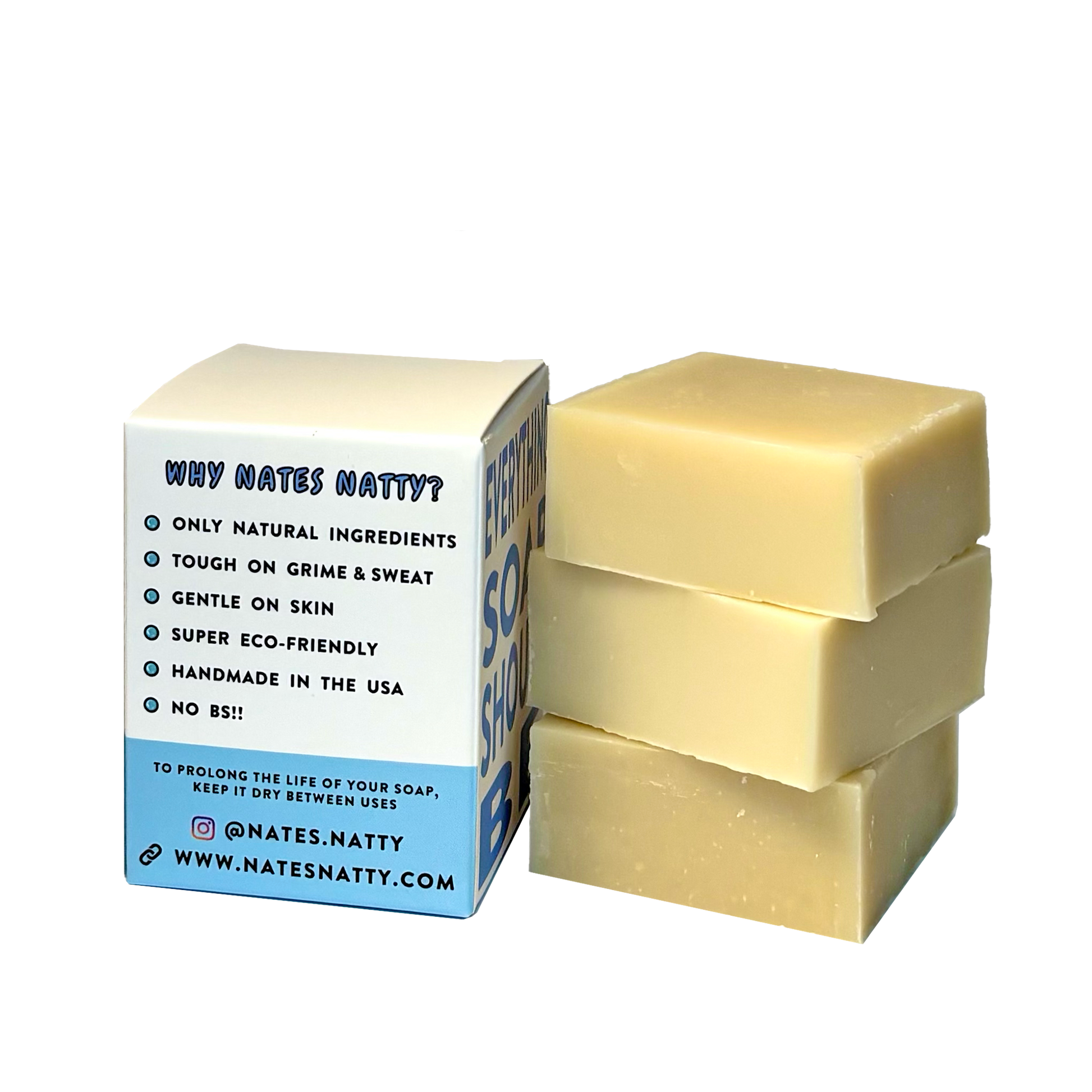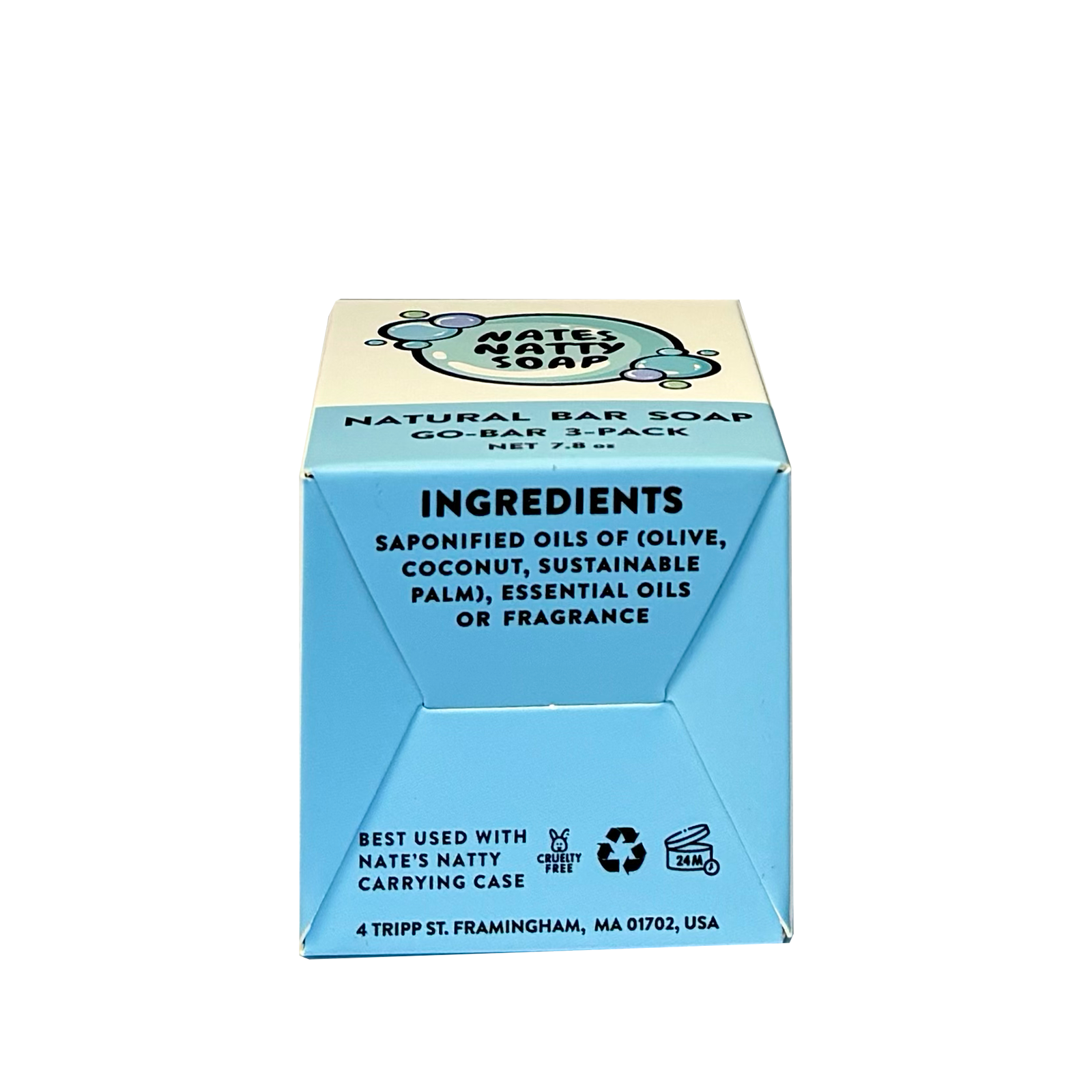 - Three 2.6 oz bars designed to fit our rugged Nate’s Natty carrying case (sold separately)